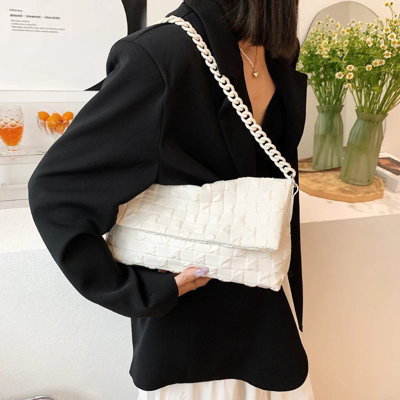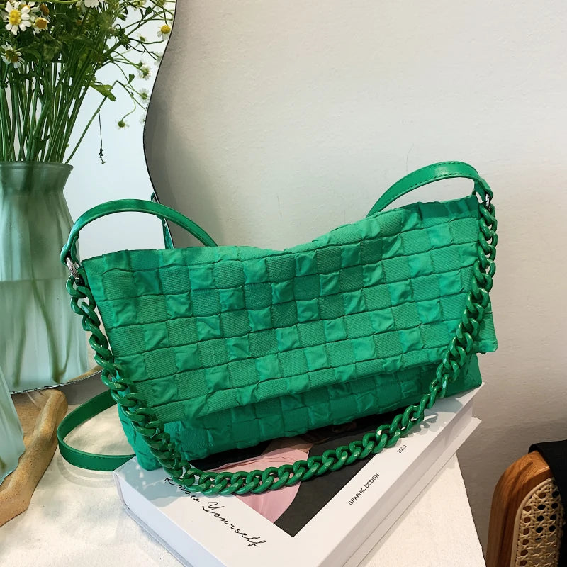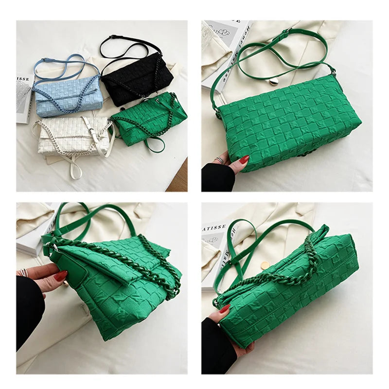 Canvas Chain Shoulder Bag Fold Women Handbag Green Tote Bag