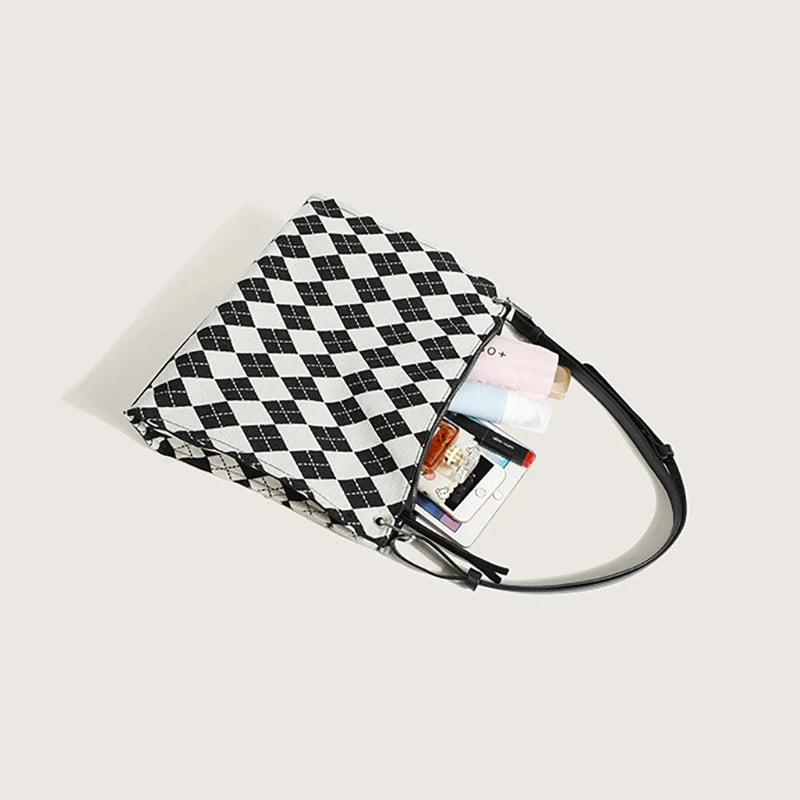 Canvas Checkered Shoulder Bag Women Large Capacity Tote Bag