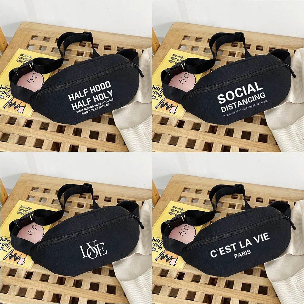 This waist pack shoulder crossbody bag is perfect for outdoor sports and daily picnics. Designed for both men and women, it features a text printing mini bag.