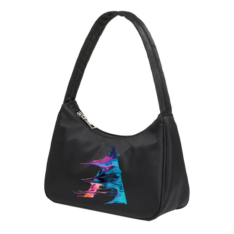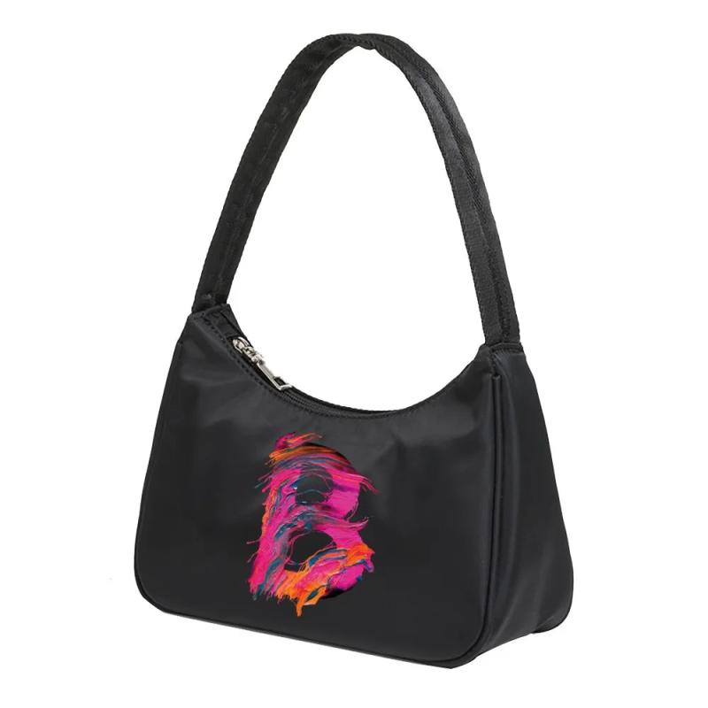 This canvas shoulder bag is perfect for daily use. It features letter printing and a solid color design, making it a fashionable accessory. The underarm style is convenient for carrying essentials while shopping or running errands.