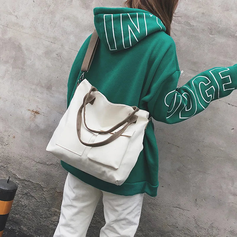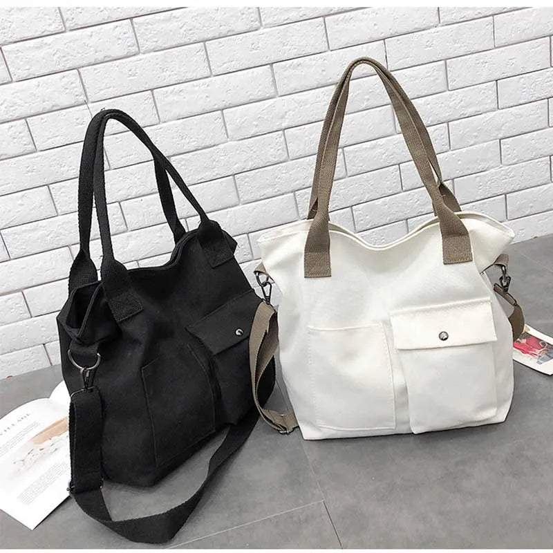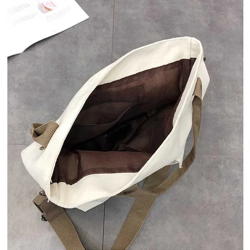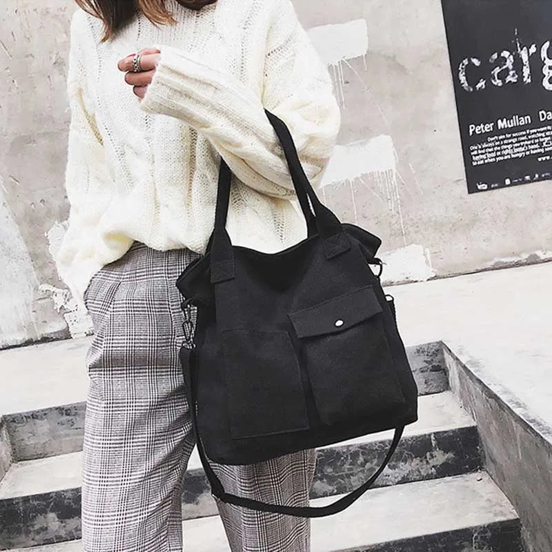 Stay stylish and organized with this large capacity tote bag made of durable canvas. Perfect for everyday use, this crossbody bag is the ideal accessory for any modern woman.