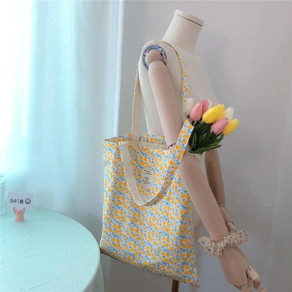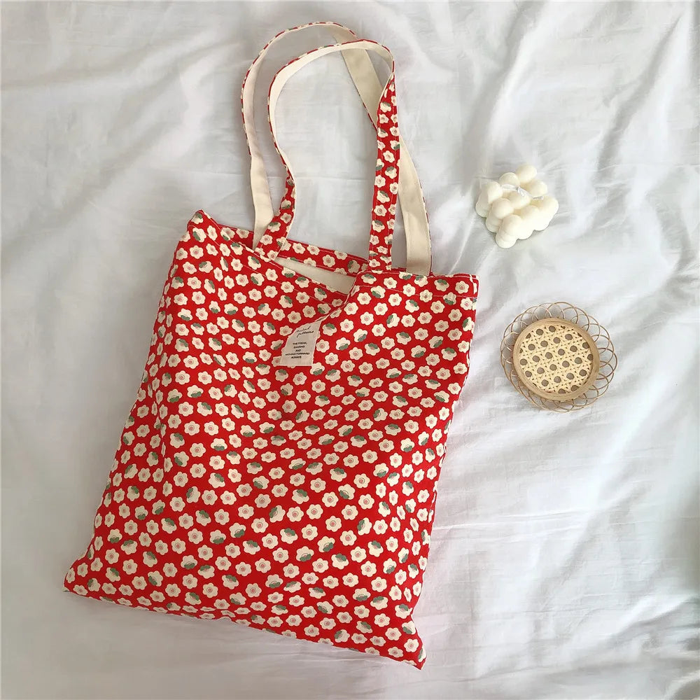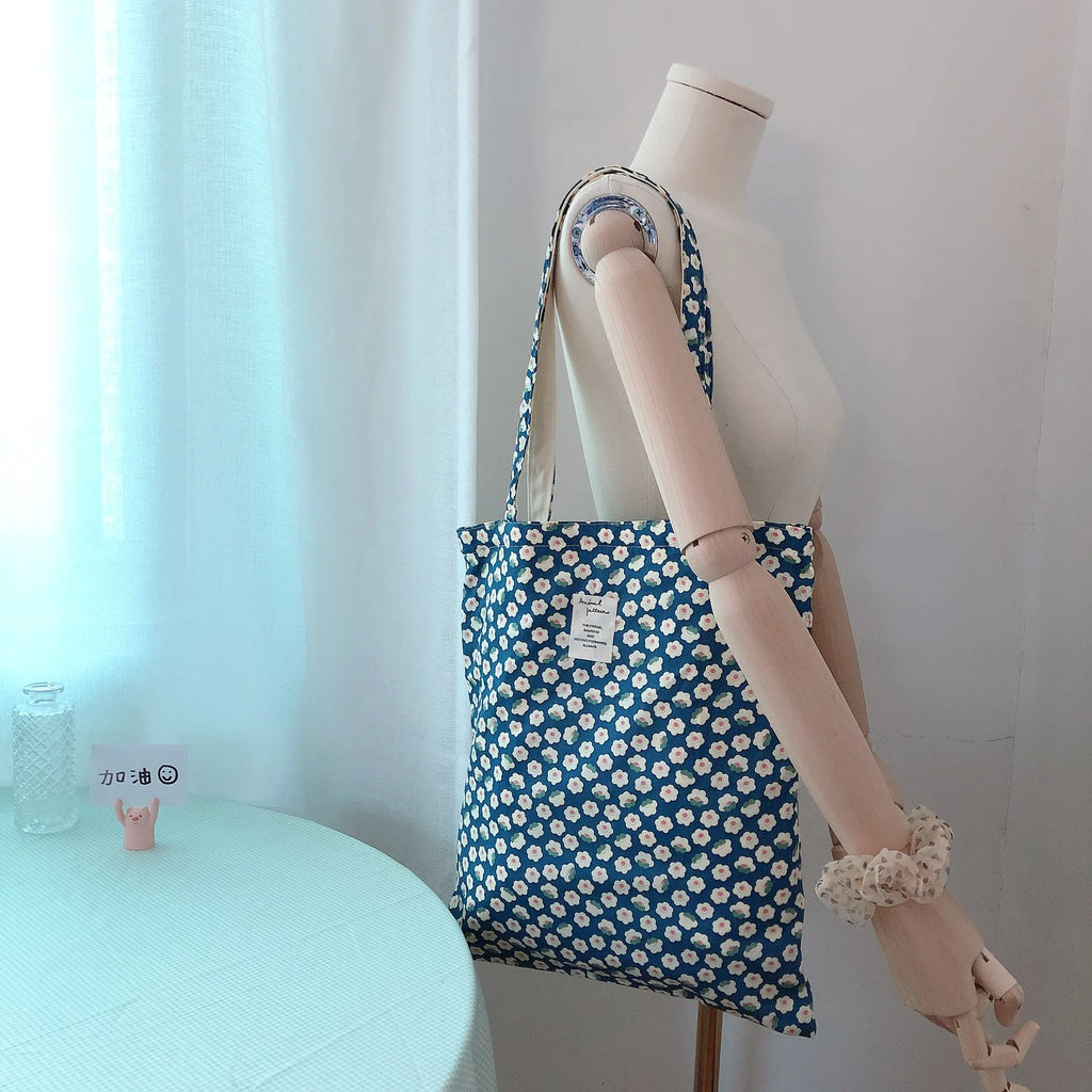 Canvas Flower Shoulder Bag Retro Floral Big Shopping Bags