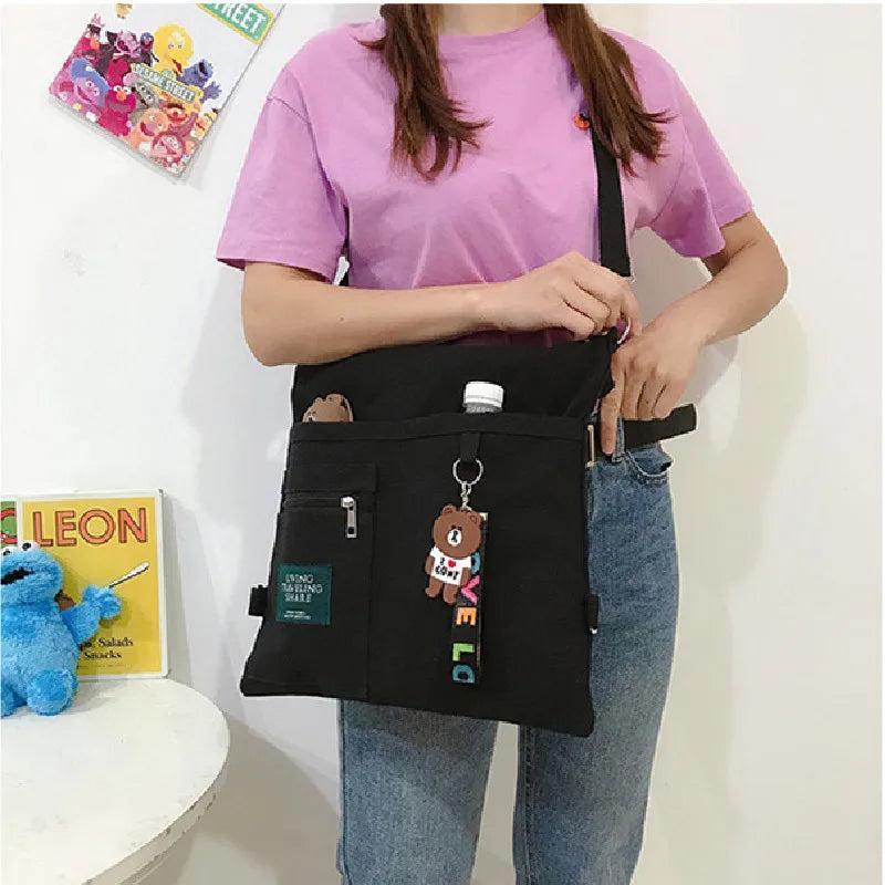 This stylish canvas handbag is perfect for everyday use. It features a shoulder strap for easy carrying and is ideal for shopping trips.