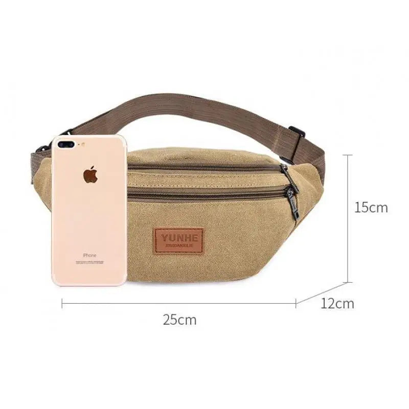 This waist bag is the perfect accessory for holding your money, phone, and other essentials while on the go. Made of durable canvas, it is stylish and practical for everyday use.