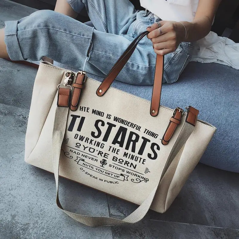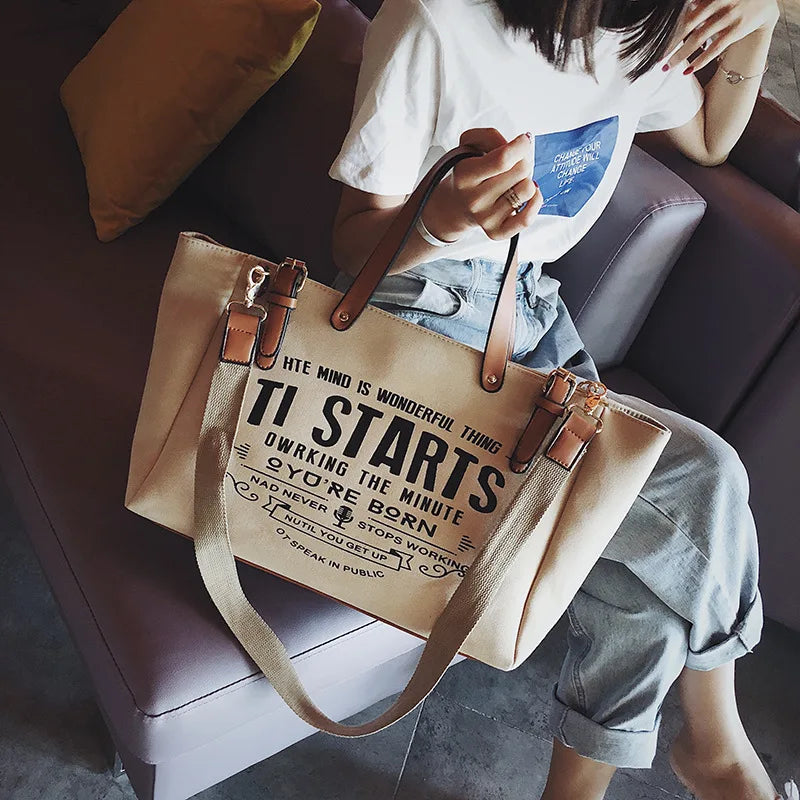 Canvas Large Capacity Tote Letter Shoulder Messenger Bag