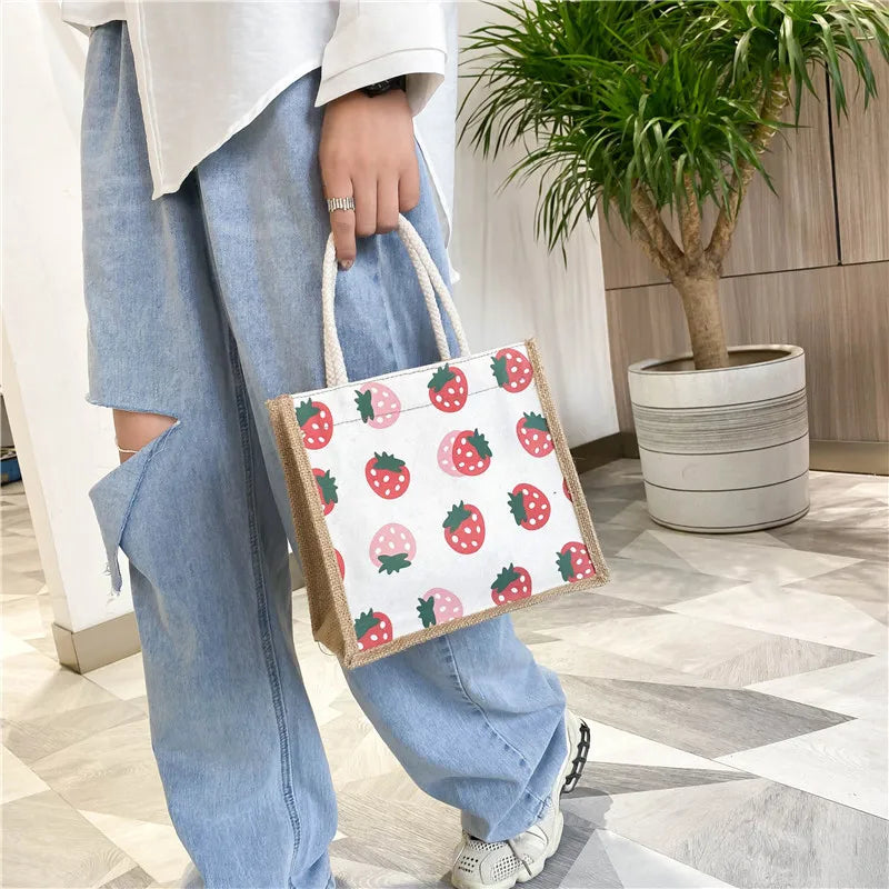 Canvas Lunch Bag for Women Girls Tote Handbag Pouch Food Storage Container