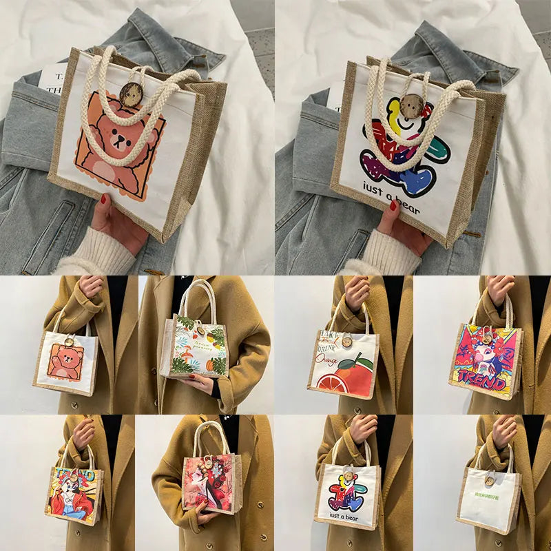 Canvas Lunch Bag Multicolor Thermal Breakfast Box Waterproof Portable Picnic