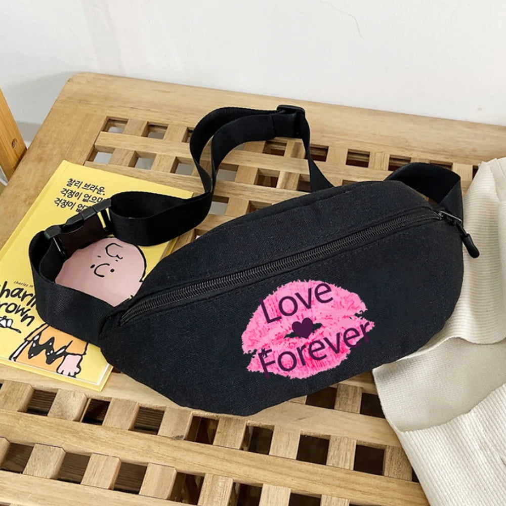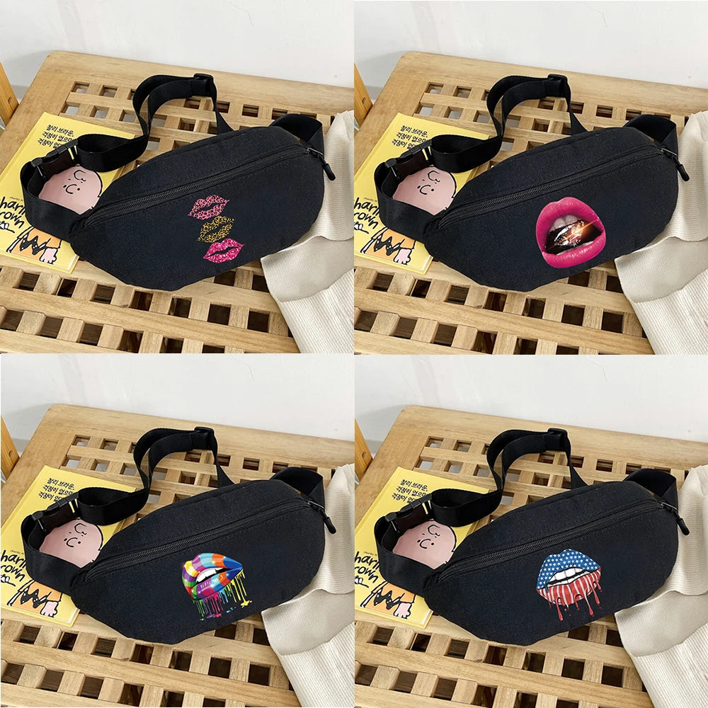 This stylish waist bag is perfect for carrying your essentials during sports, gym, or any outdoor activities. It features a fun mouth print design and can be worn as a belt, chest bag, or fanny pack.