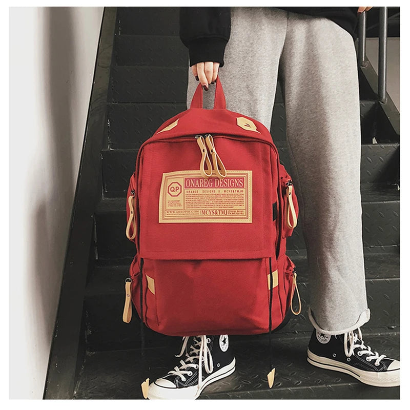 Canvas School Laptop Backpack for Teenage Girls
