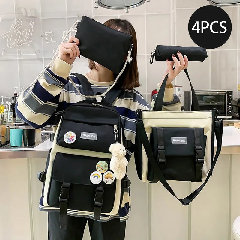 Description:Carry all your essentials in style with this canvas school bag that is perfect for college students. It features a laptop compartment for convenience.Features: 4-piece set of canvas school bags Ideal for teenage girls and college students Spacious design to store all essentials Includes a dedicated compartment for laptops Fashionable...