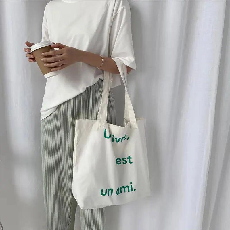 Stay stylish with this spring summer canvas bag featuring a letter design. Perfect for casual outings, shopping, and everyday use.