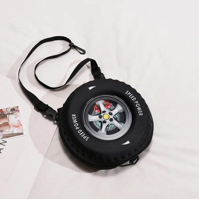 This stylish shoulder bag features a unique tire shape design. It is made of durable canvas material with a large capacity to hold your essentials. The bag can be used as a handbag, shoulder bag, or crossbody bag for versatility.