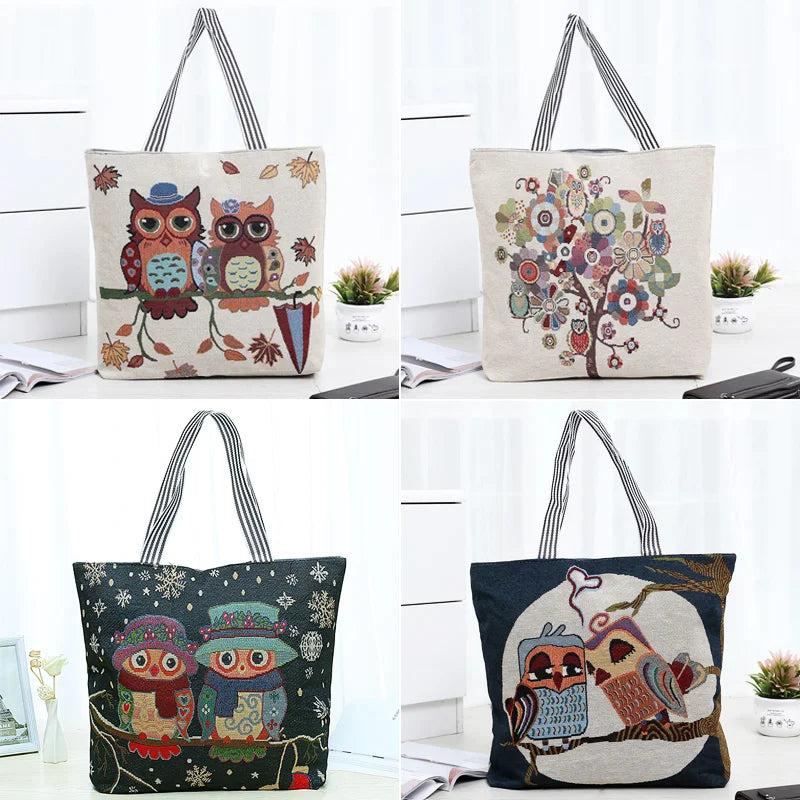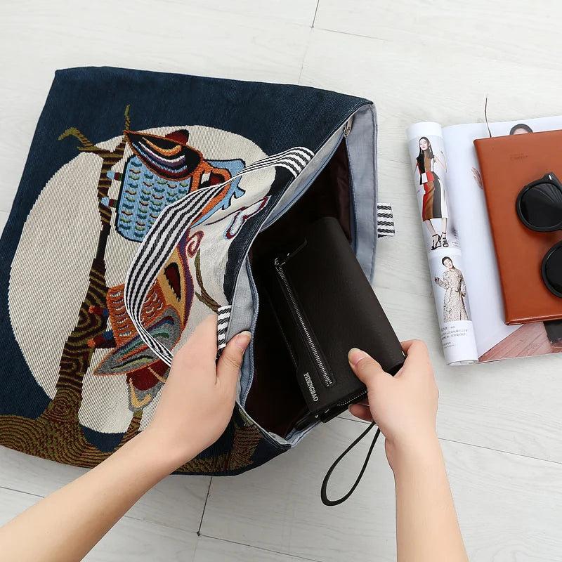 Canvas Shoulder Bag Large Tote Embroidered Vintage Handbag Student School Bolsos