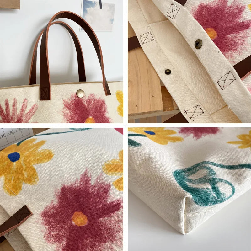 This stylish canvas shoulder bag features a beautiful floral print, making it perfect for shopping, travel, or as a preppy bookbag for students. Its large capacity ensures you can carry all your essentials with ease.