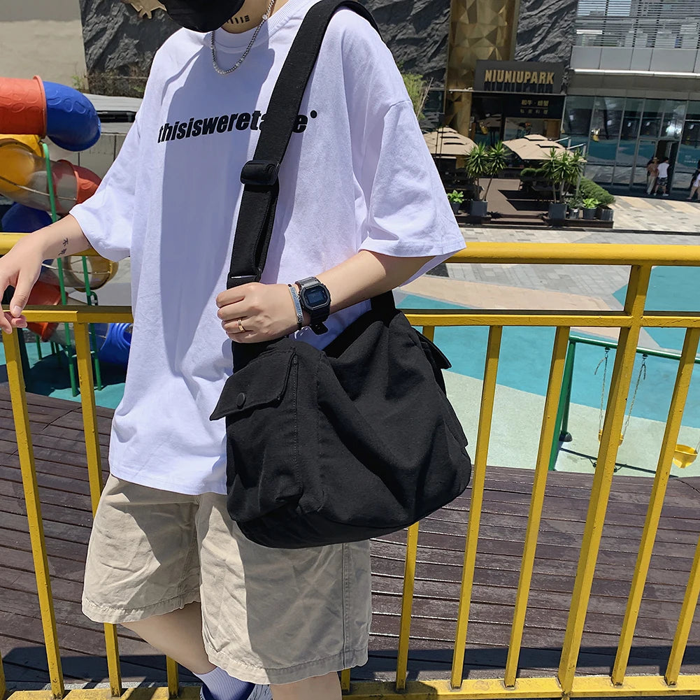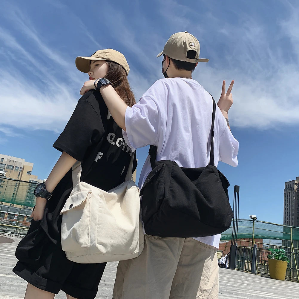 This canvas shoulder crossbody bag is perfect for women and men, offering a large capacity for outdoor shopping and travel.