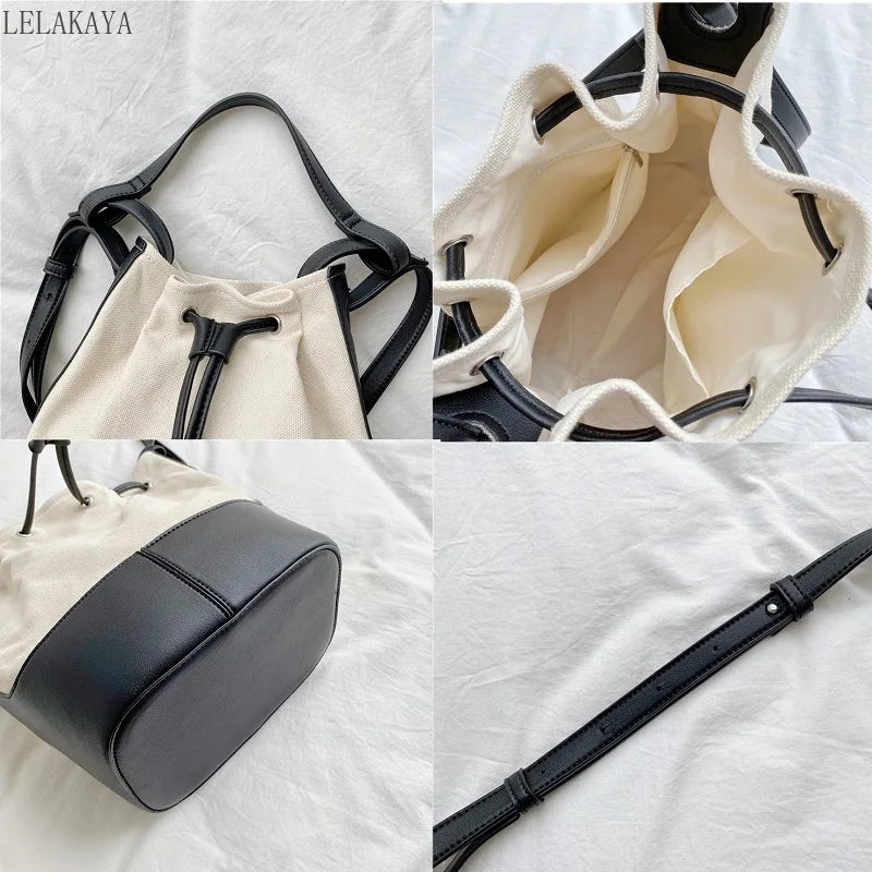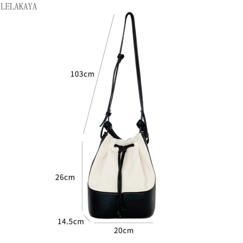Canvas Stitching Bucket Bag Casual Shoulder Bag