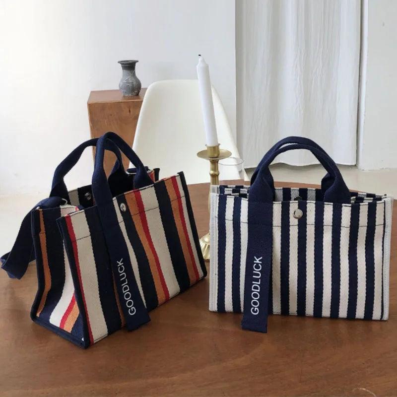 Canvas Stripe Women Handbag Small Bag Single Shoulder Canvas Bag