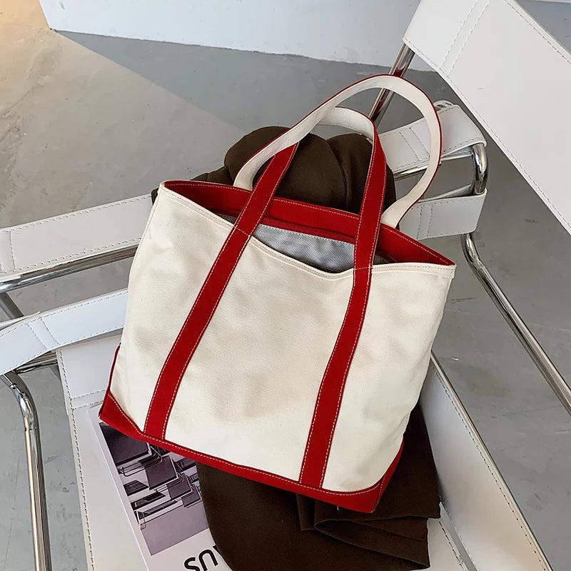 This stylish canvas handbag features a striped design with a large capacity, perfect for carrying all your essentials. It can be used as a casual tote or a shopper handle bag, ideal for everyday use.