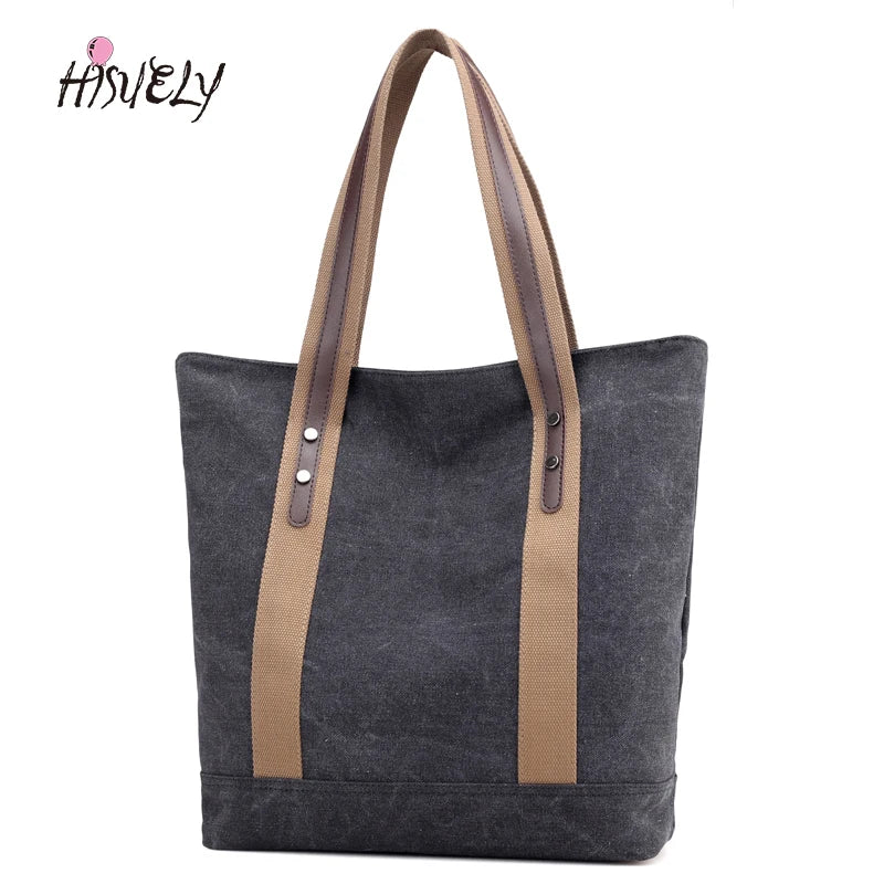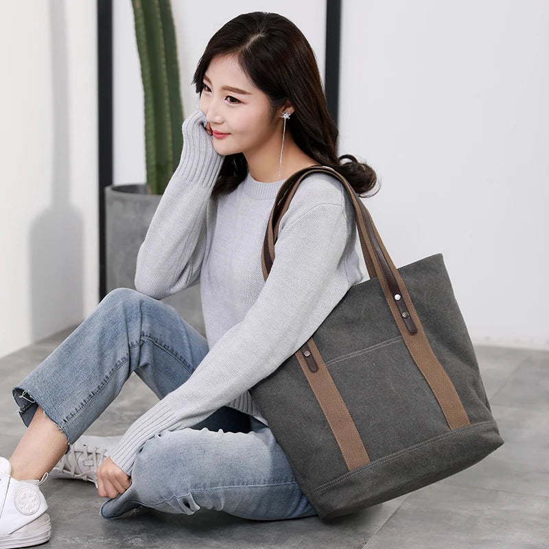 Canvas Tote Handbag Women Shoulder Bag Zipper Eco Shopping Bag