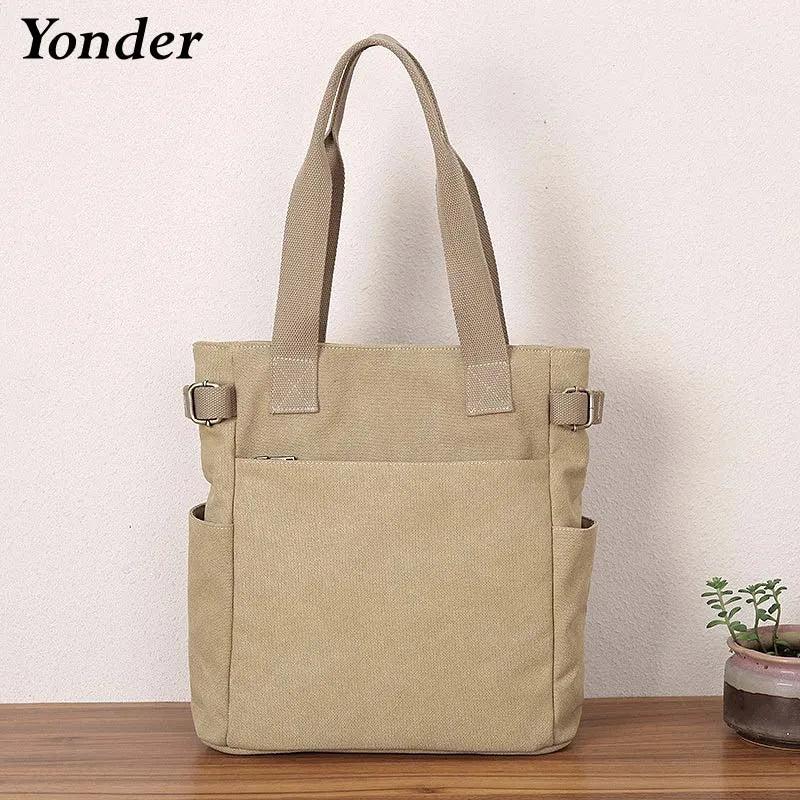 Canvas Tote Shoulder Bag Large Casual Handbag Zipper Khaki Rice