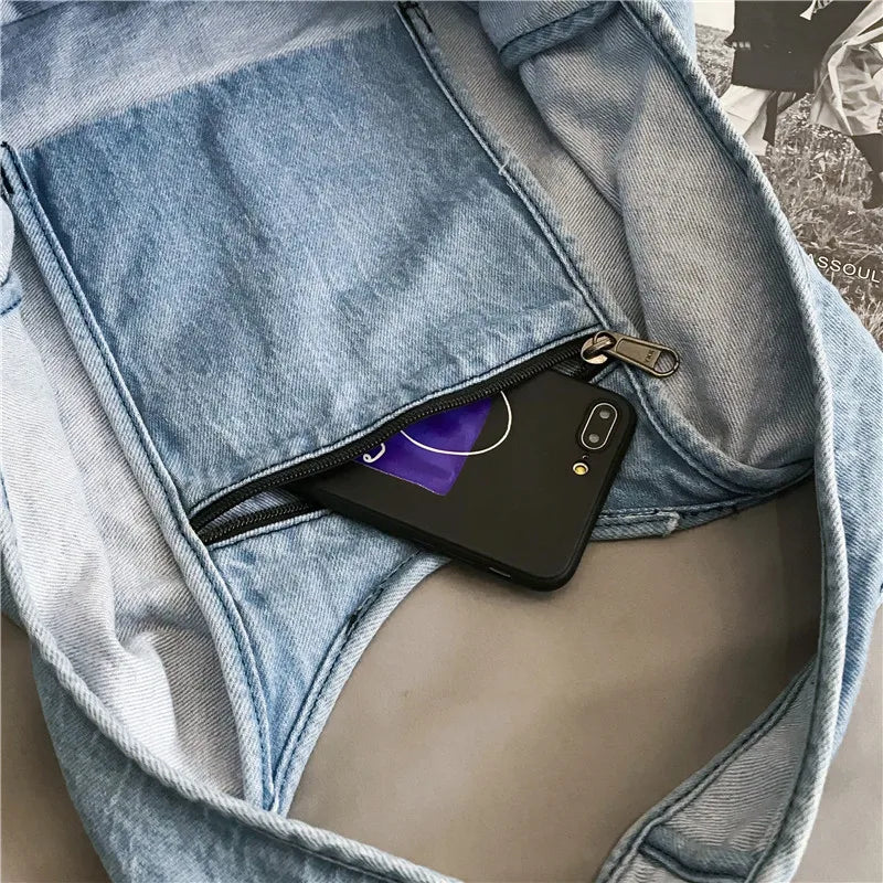 Stay stylish with this casual canvas tote shoulder bag made of high-quality jeans material. Ideal for students with its spacious design and soft texture.