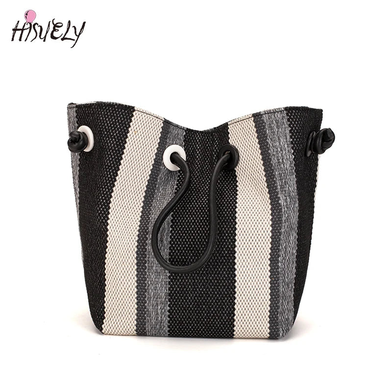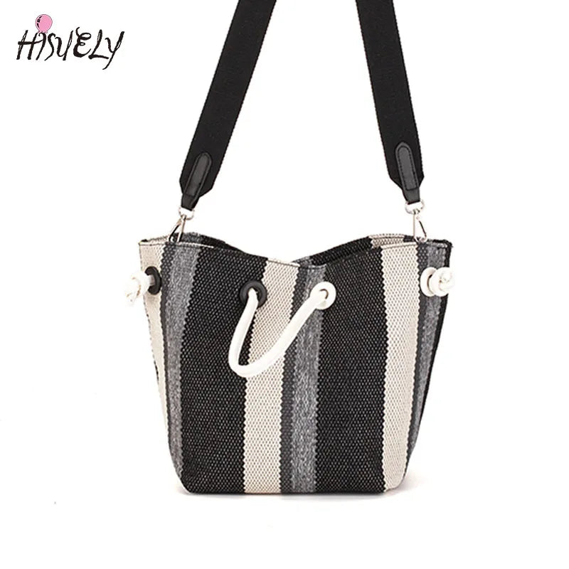 Canvas Totes Striped Womens Handbag Patchwork Shoulder Bag