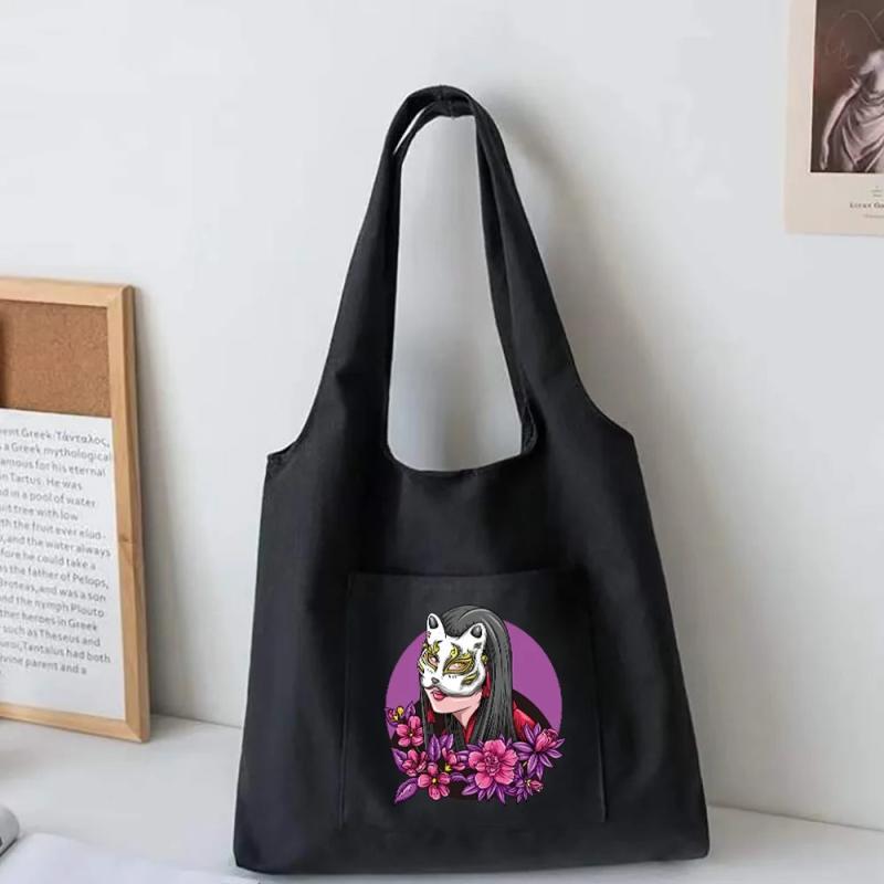 This canvas vest bag is perfect for women who love stylish and practical accessories. It features a mask pattern design, large capacity, and is ideal for shopping or everyday use.