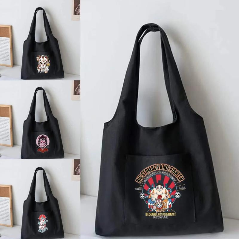 Canvas Vest Bag Women Shoulder Shopping Bag Mask Pattern Tote Bag