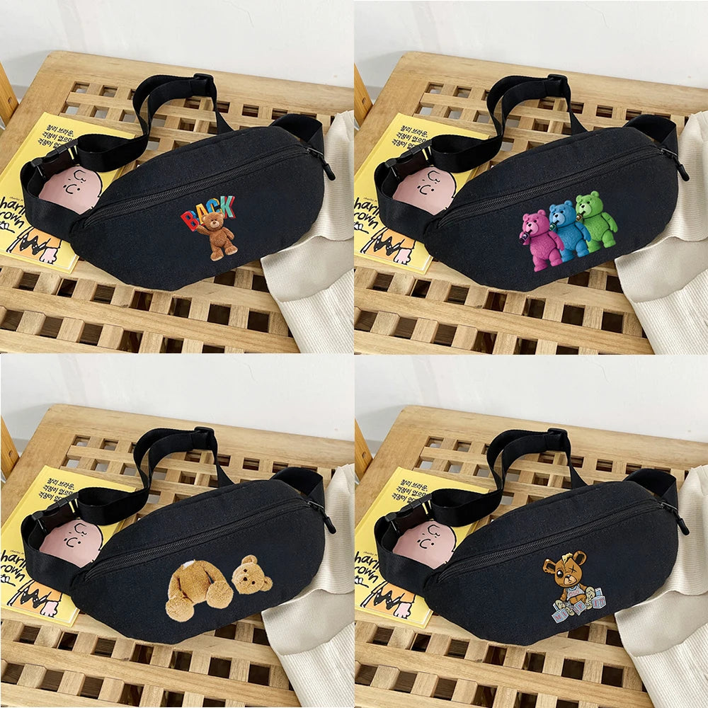 Canvas Waist Bag Bear Print Gym Sports Messenger Bag
