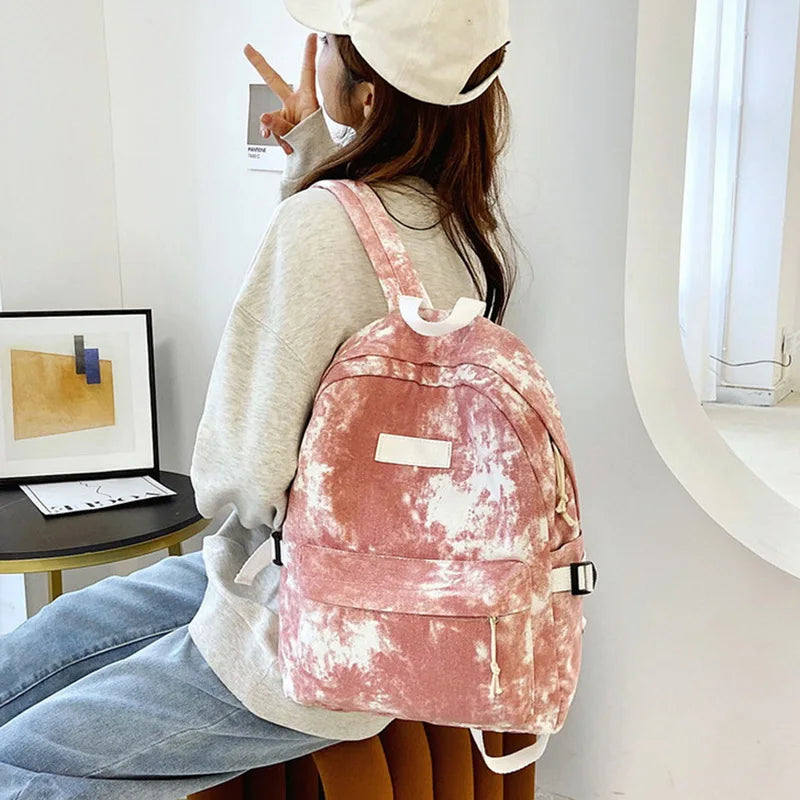 Canvas Women Backpack Tie Dye Shoulder Bag Bookbags Teen Girls Rucksack