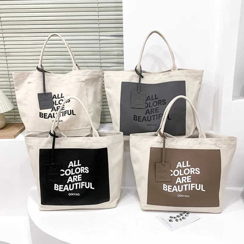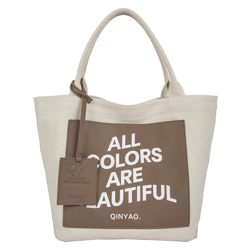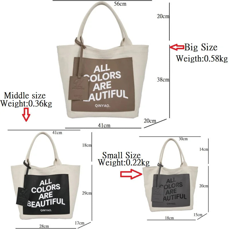 This large canvas tote bag is perfect for everyday use. The letter shopper bag design is stylish and functional. Ideal for carrying groceries, books, or essentials.