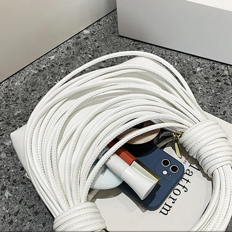 Stay on-trend with this stylish messenger bag that features a unique woven rope knot design. Perfect for everyday use and adding a touch of elegance to your outfit.