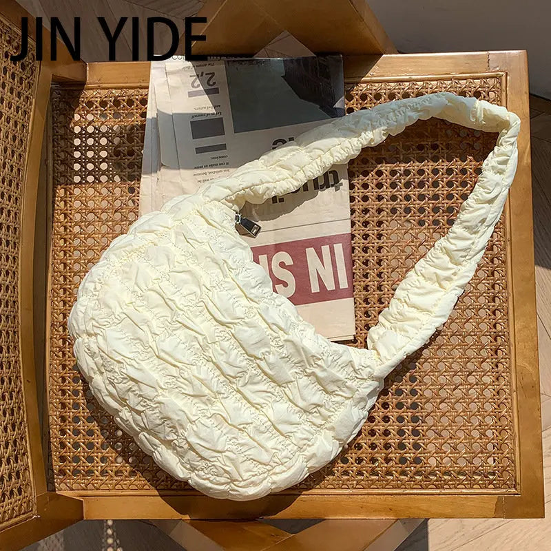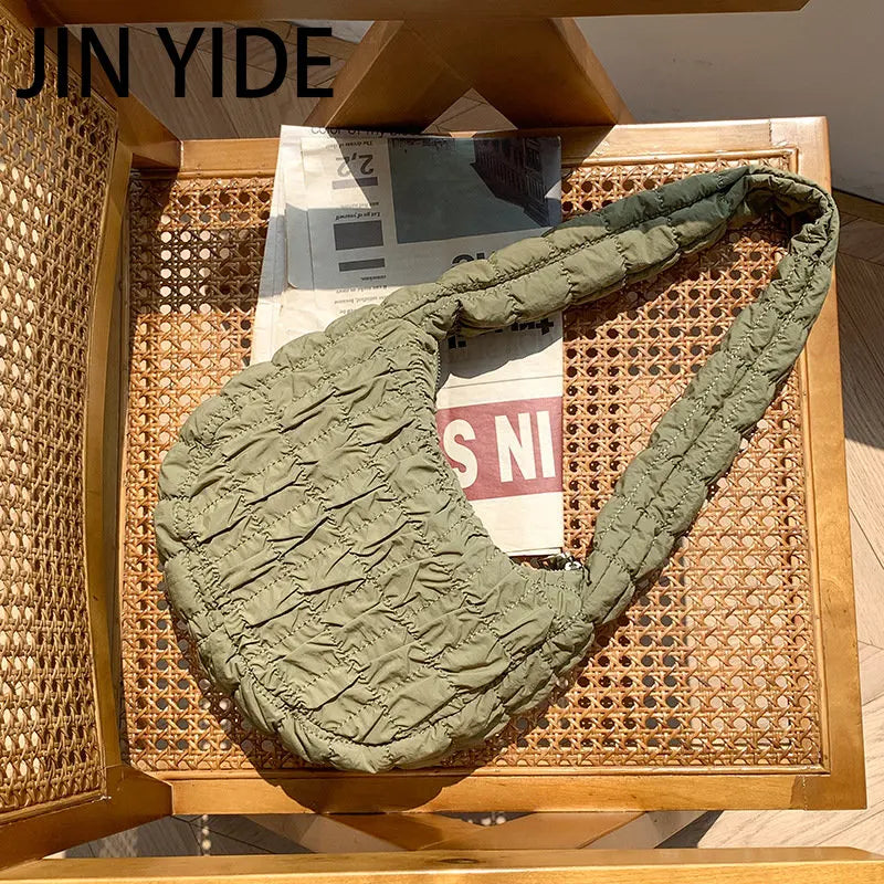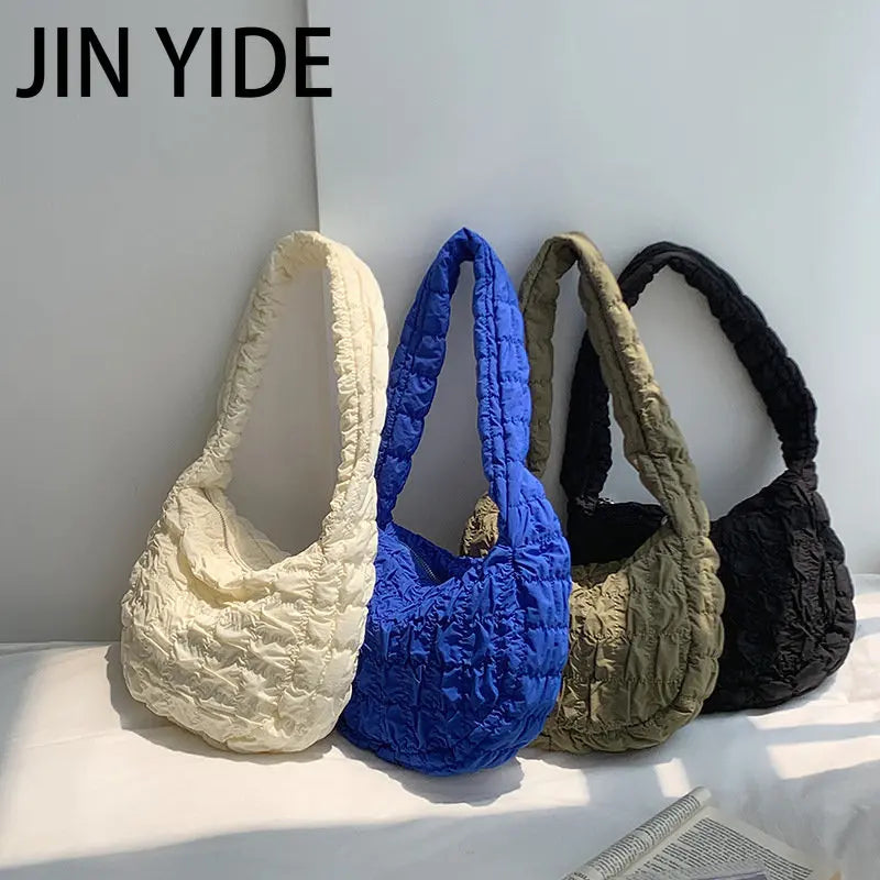 Casual Ruched Quilted Women Shoulder Bags Hobos Nylon Lady Handbags