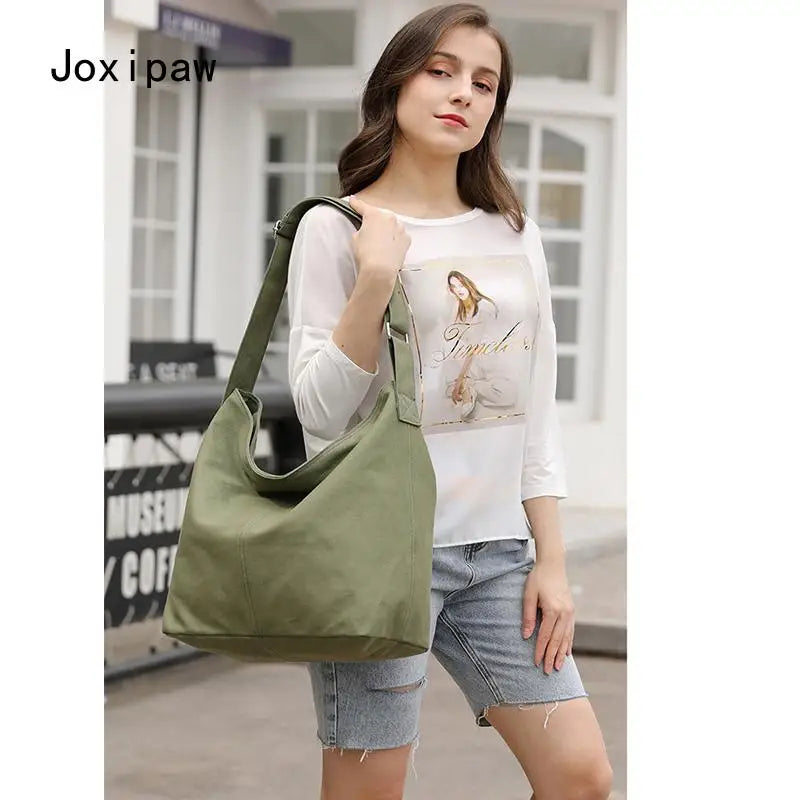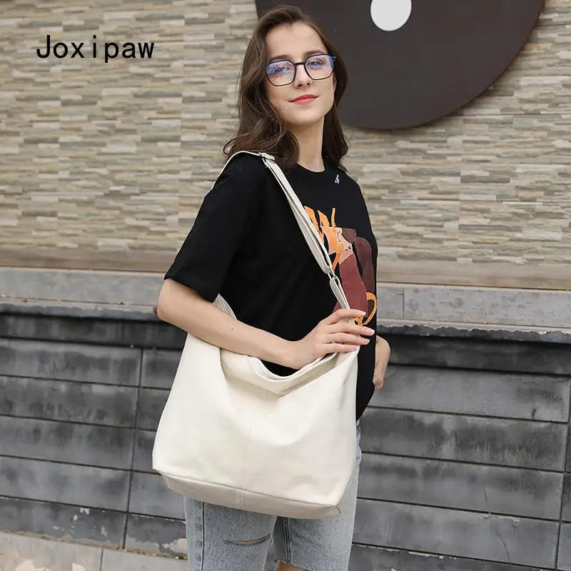 Casual Solid Handbag Shoulder Bag for Women Large Capacity Canvas Bag