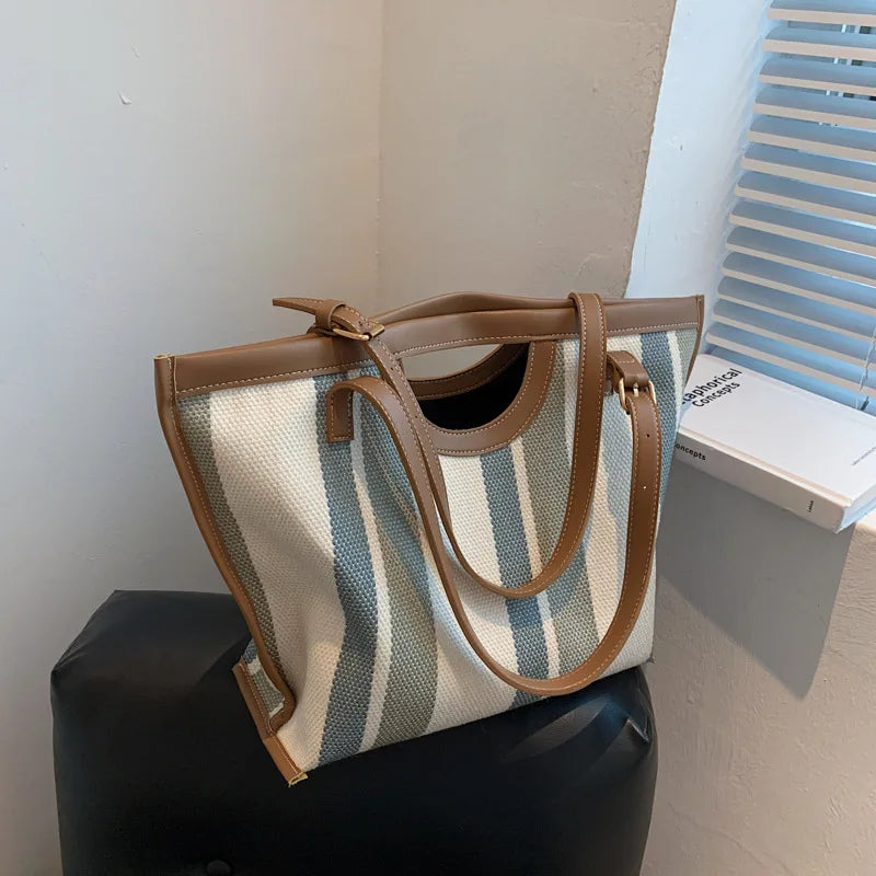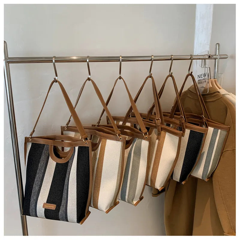 Casual Striped Canvas Tote Bag Women Shoulder Bags Lady Handbags
