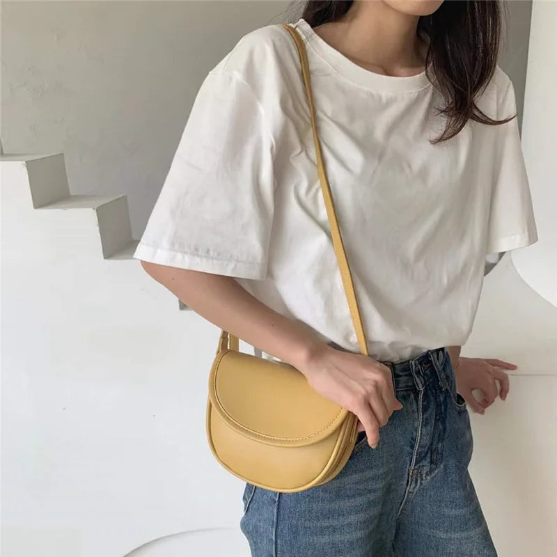 This College Casual Versatile Women Shoulder Bag is perfect for daily commute, school, and general use. It features a half-round saddle design that adds a trendy touch to your outfit.