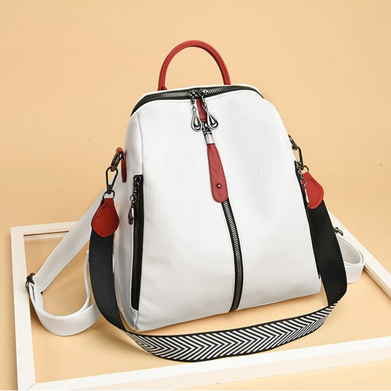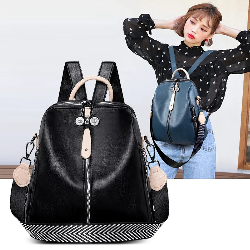 This high-quality backpack is perfect for women on the go. It's made of soft leather, has a large capacity, and is ideal for school or casual travel.