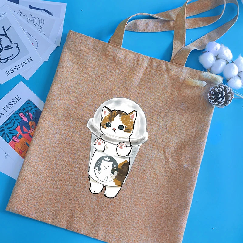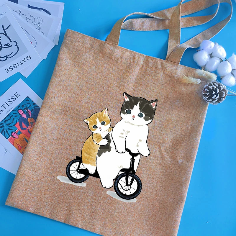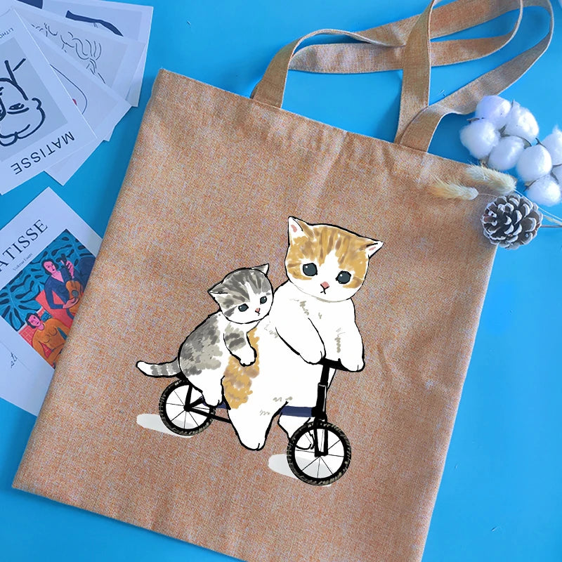 Cat Series Print Canvas Shopper Handbag Reusable Tote Bag