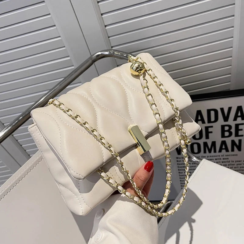 This chain bag is a stylish and versatile messenger bag that features high texture and a small square design. Perfect for various occasions.