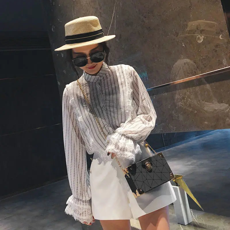 Chain Geometric Pattern Small Square Bag Messenger Shoulder Bag