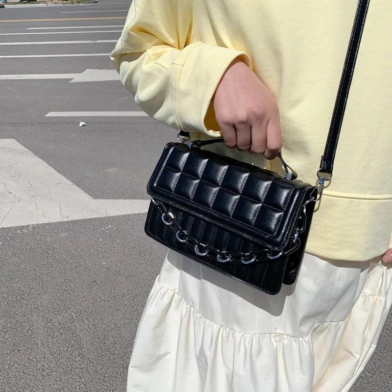 Chain Handbags for Women Striped Plaid Small Square Bag Women Shoulder Bags