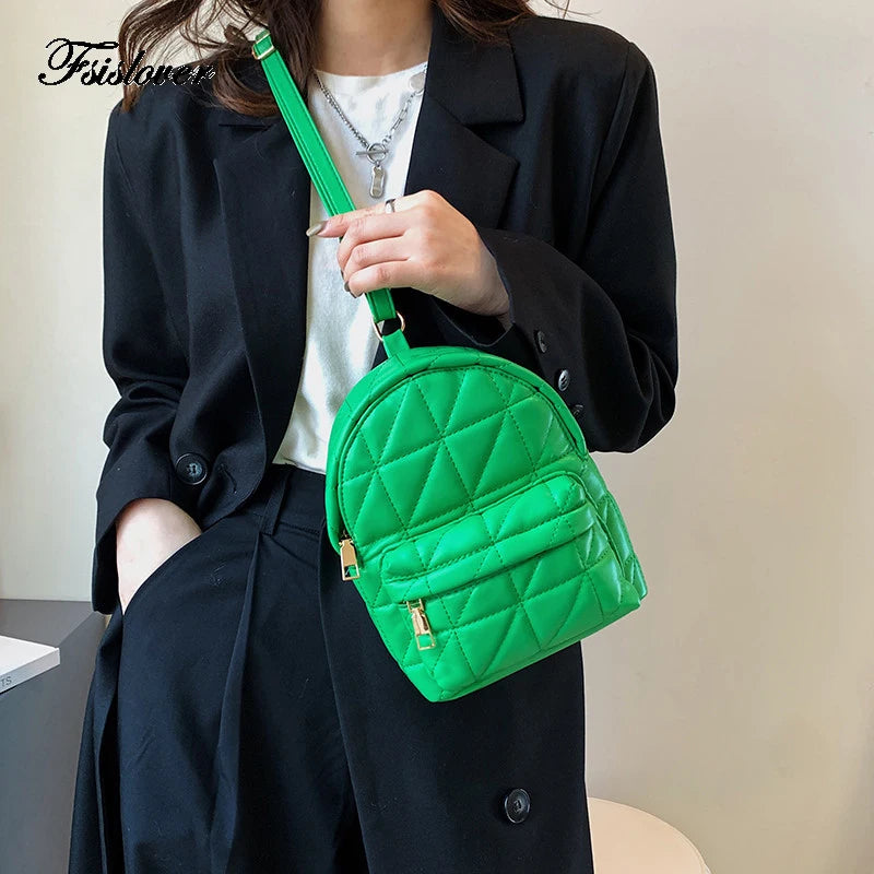 This women's waist bag is made of high-quality PU leather, perfect for casual outings. The small Lingge design adds a fashionable touch to your look.