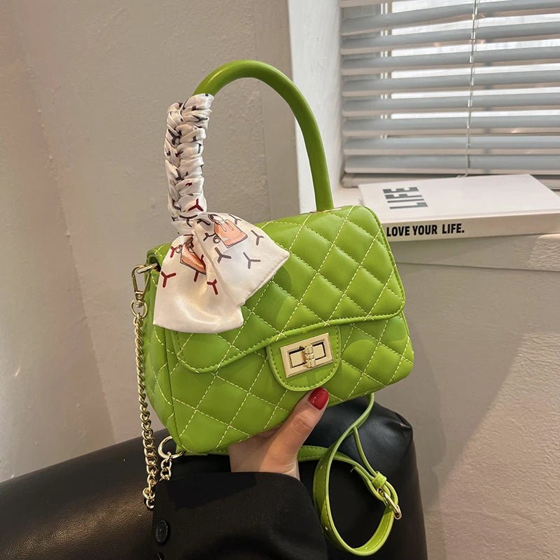 Elegant and stylish crossbody bag featuring a rhombus lattice design. Made from high-quality leather, this bag is perfect for everyday use. The chain strap adds a touch of sophistication.