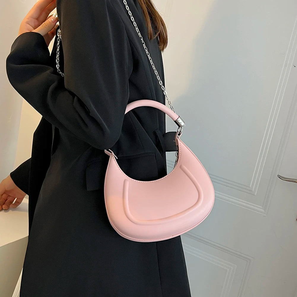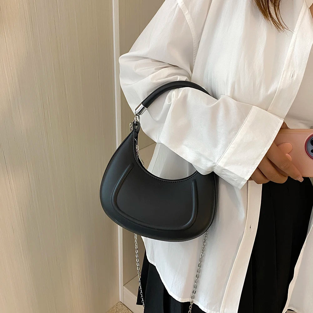 Stay stylish with this PU leather crossbody bag for women and girls. Features a solid satchel design with a convenient chain shoulder strap.