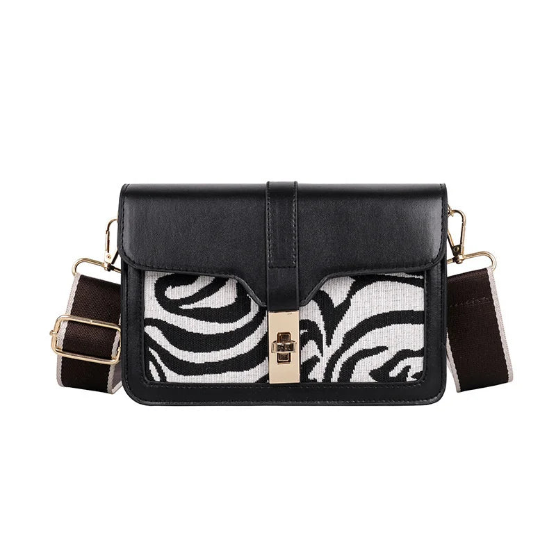 Stay stylish in autumn and winter with this small square bag featuring character pattern splicing design.