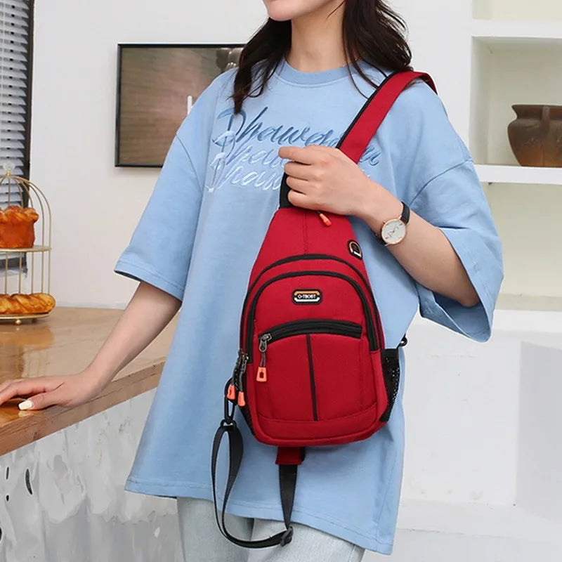 Stay organized on-the-go with this versatile chest bag that features an external earphone jack and multiple compartments to store your essentials.