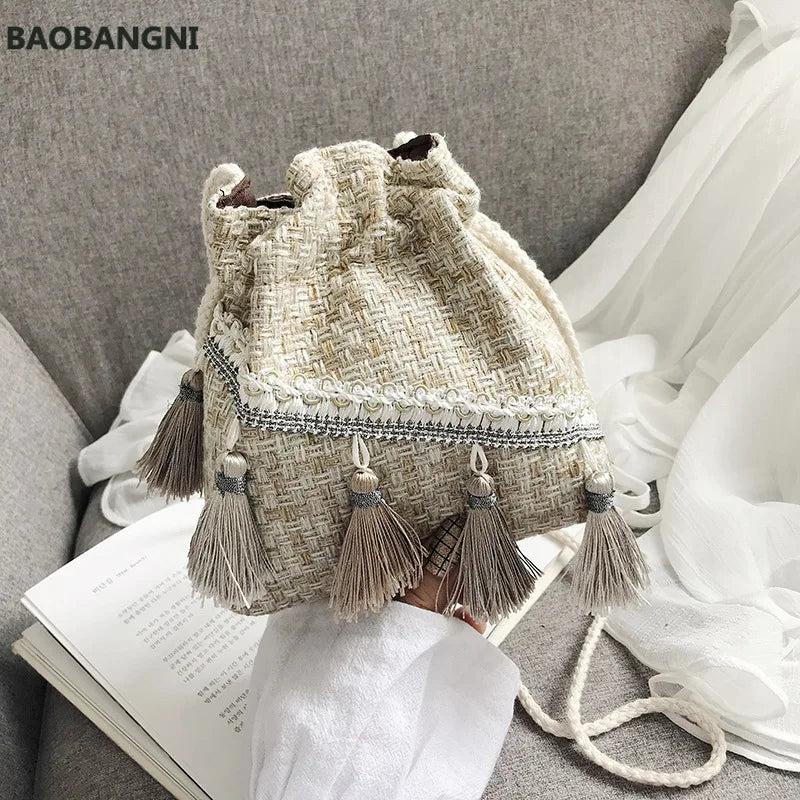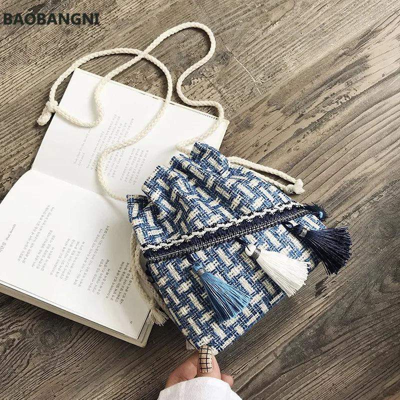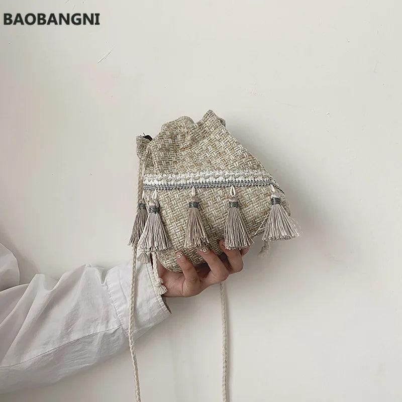 Chinese Style Messenger Shoulder Bag Costume Cloth Purse Tassel Bucket Bag