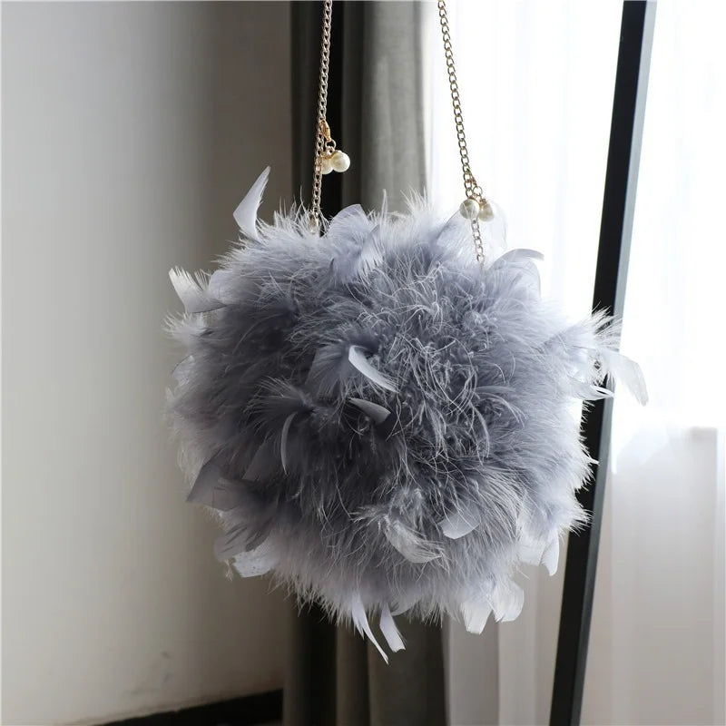 Description:This feather handbag is a stylish addition to your evening party look. Perfect for carrying your essentials while adding a touch of glamour.Features: Circular handbag with chain shoulder strap Ideal for evening parties and special occasions Plush material with feather detailing Small size perfect for carrying essentials Stylish and elegant...