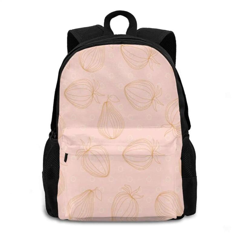 This stylish and versatile backpack features a classic design with peach and strawberry pattern, perfect for men, women, girls, and teenagers. Ideal for everyday use or school.