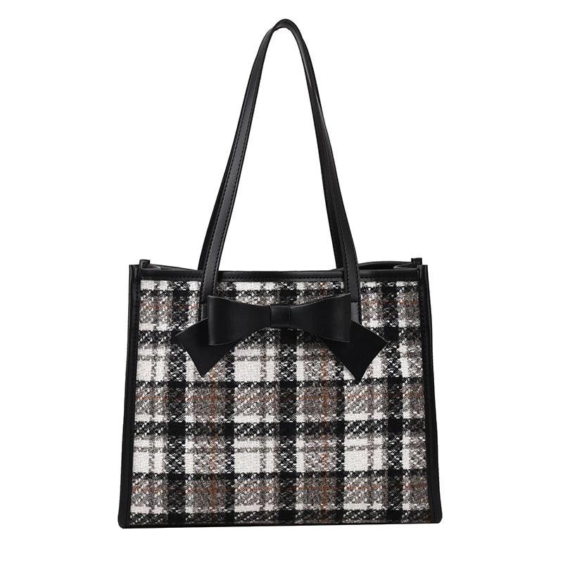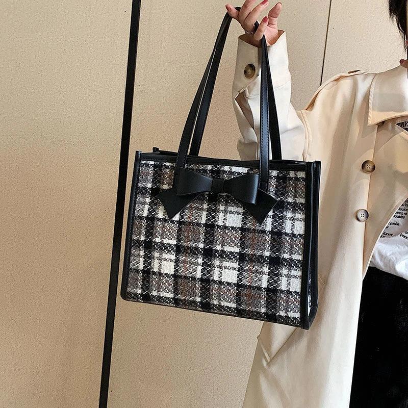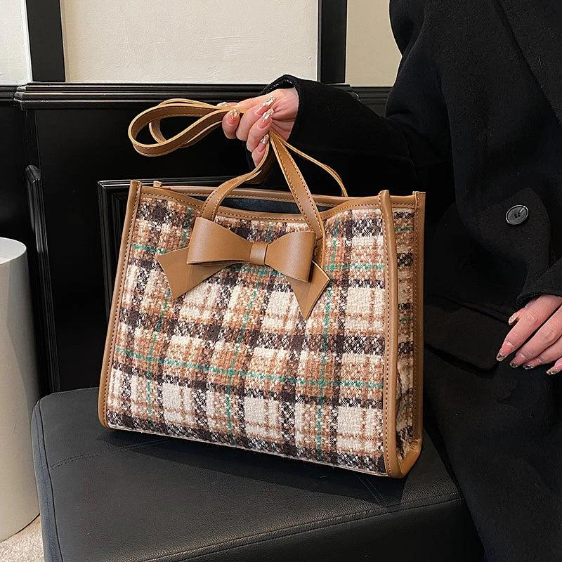 Classical Woolen Cloth Totes Bags Women Shoulder Handbags Bow Handbag